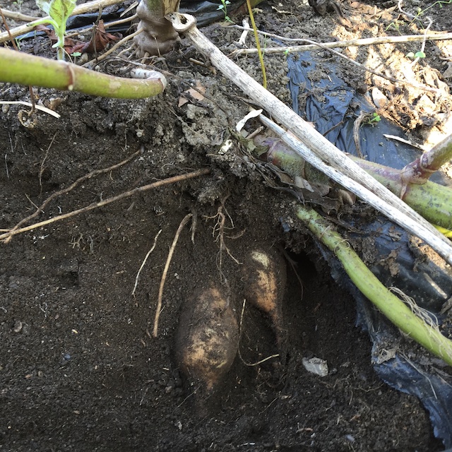 そこで、これからしばらくヤーコンの収穫は、株を掘り起こさないで、株の周りを掘って、手に触った芋を収穫する方法に切り替えることにした。