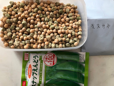 残念ながらスナップエンドウは種取りができなかったので、種を買うことになった。