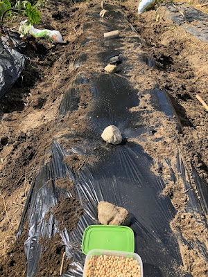 エンドウ豆も連作は良くないとのことで、準備した畝は去年とは違う場所だ。