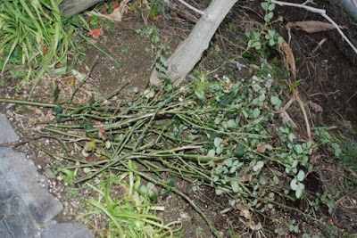 | まだ枝芽が伸びていなかったので、切り落としは枝は去年より短いものが多い。 |