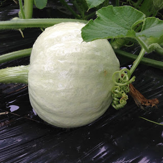 | こちらはえびすカボチャと同じような形だが色が真っ白。 これは、1週間程前の写真。 |
