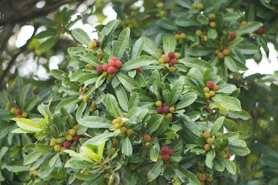 一方、こちらは今の時期に赤い実を付け始めたヤマモモ。