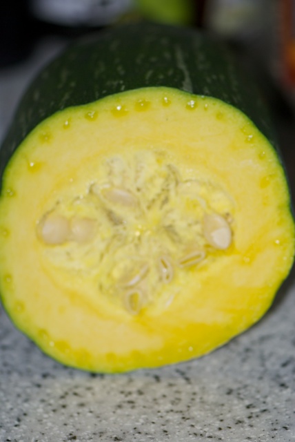 この長カボチャ、もう少し時間を置いて収穫した方がよかったのかもしれない。