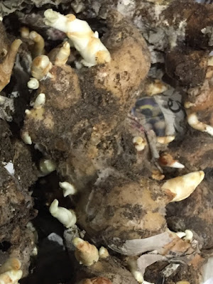 こちらは、保存に成功し白い芽を出している種ショウガ。