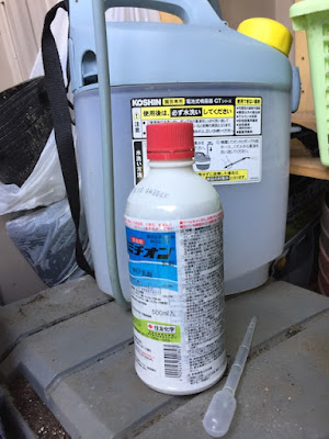 そこで、今年もミカンの木には収穫後にスミチオン乳剤を1回だけ散布した。