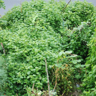 昨年も、こんな青シソがたくさん自然発生したのだが、全部引き抜いてしまうのがかわいそうだと、少し残した。