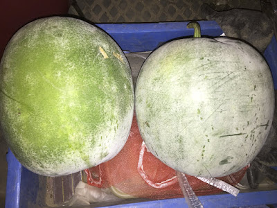 | どちらも3kgくらいありそうな冬瓜だ。 |