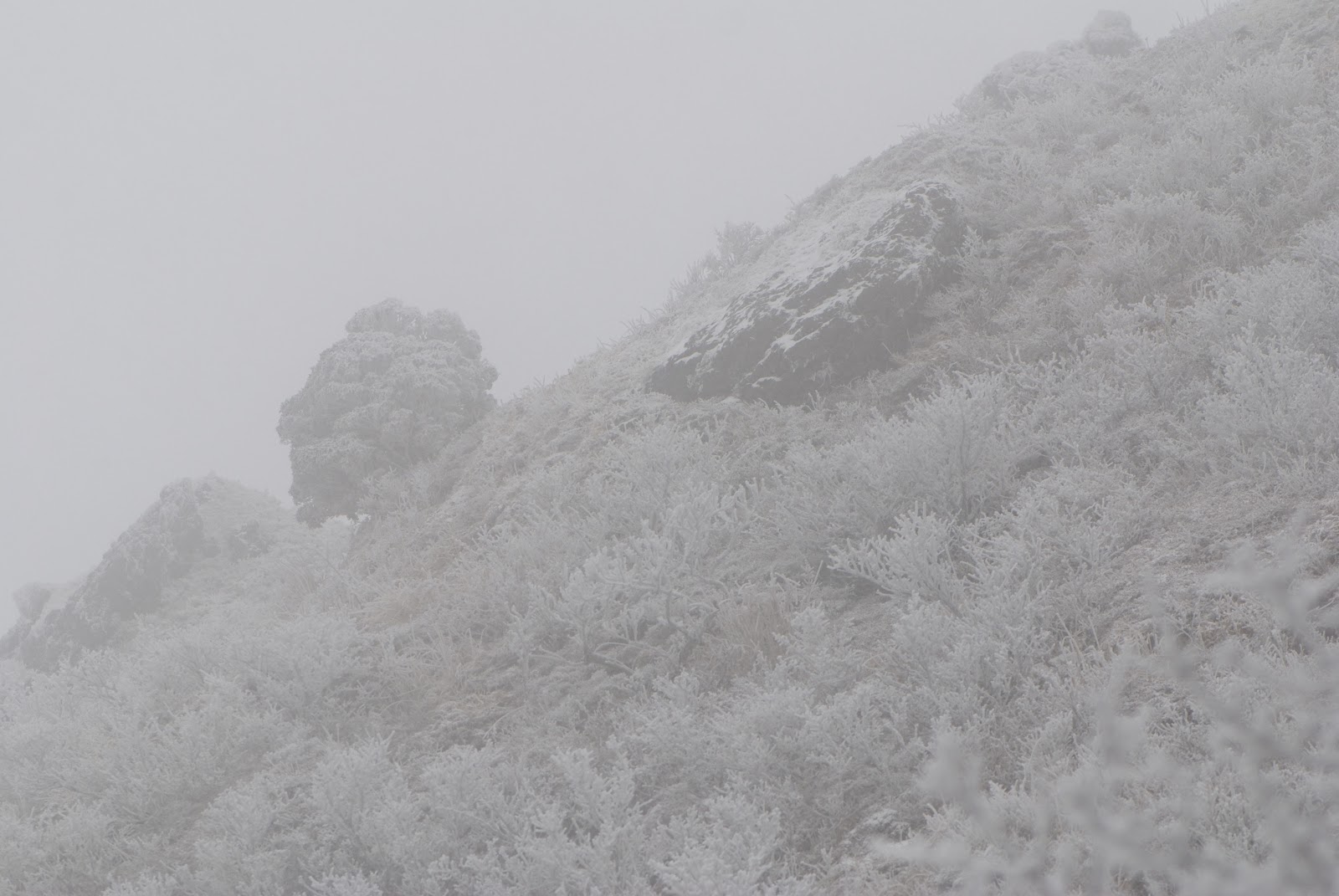 さて下の写真は登山中の写真。視界が余り良くなかったので近くの木が主役。