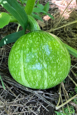 球形カボチャと思われるものも順調に大きくなっている。