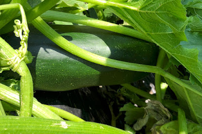 | こちらは30cm近く成長した緑ズッキーニ。 こんな採り忘れのズッキーニは種採り用に残す形となる。 |