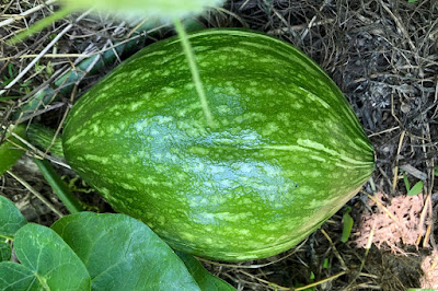 一方、カボチャの畝では、長いカボチャとして期待通りの寸胴カボチャが大きくなっている。