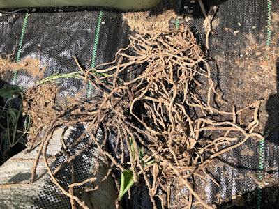 | これは土嚢袋の中で枯れたアスパラの根。 |