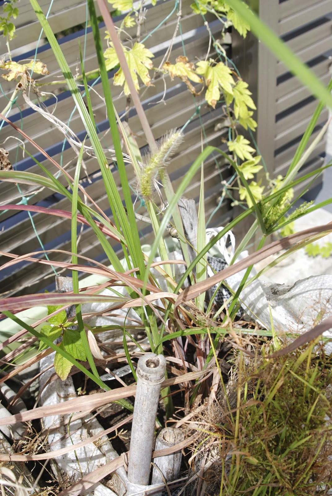 | このレモングラスを植えていたエリアは2〜3ヶ月見ていなかった。 だから、レモングラスがいつごろ枯れたのか全く分からないのだ。 |