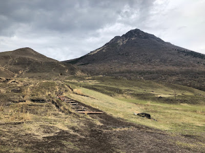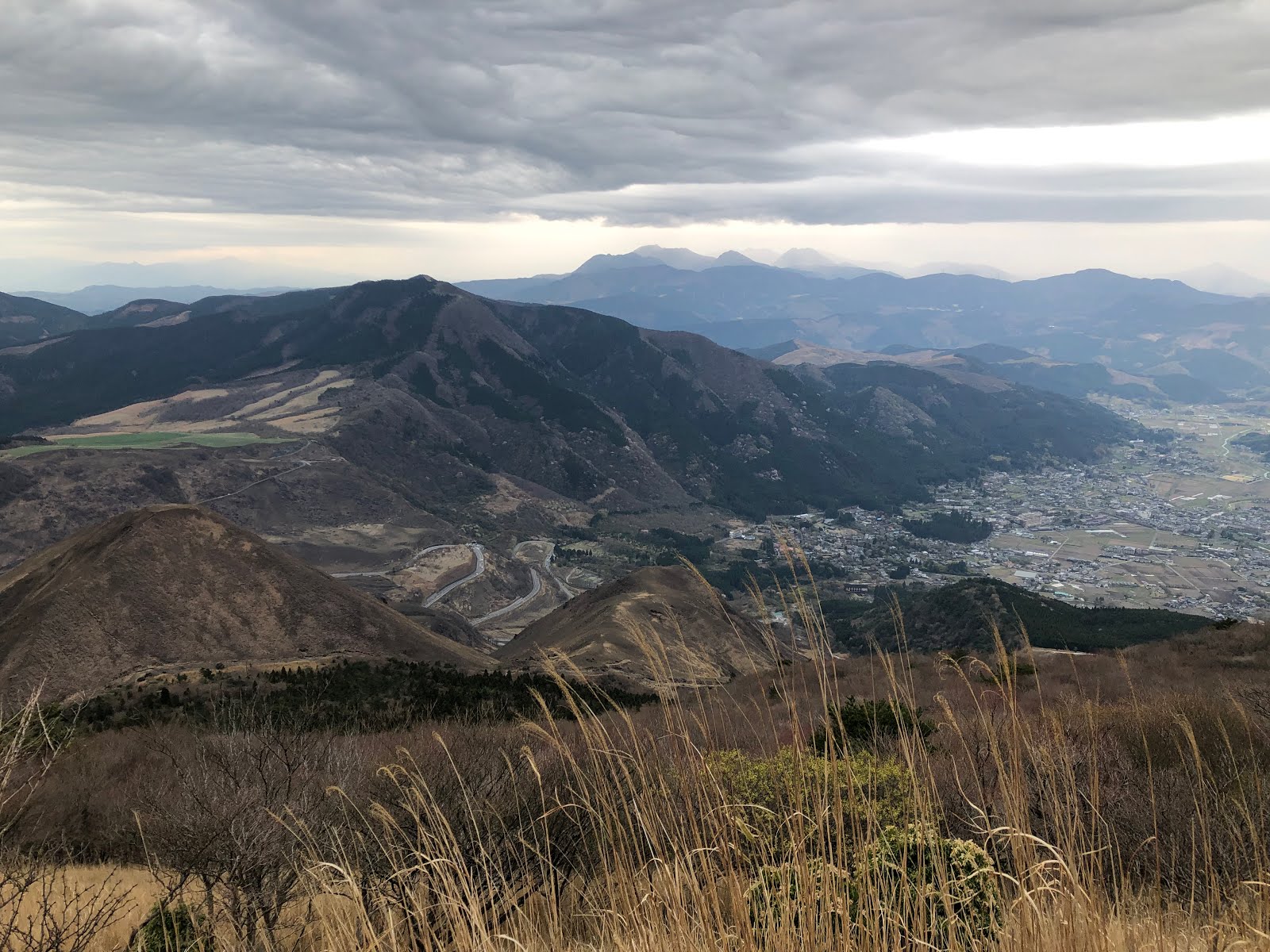 頂上付近で雨が降り出したので引き返したのだが、由布盆地や遠く阿蘇の山々もきれいに見えて気持ちよかった。