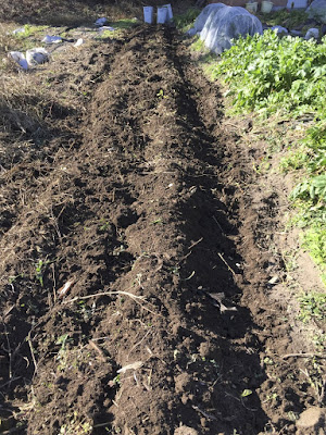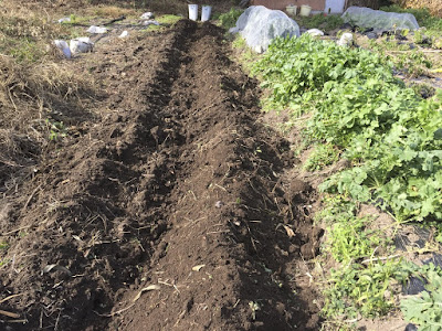 その溝に、緑肥とは言えないかもしれないが、落花生や、大量のサツマイモの収穫後の蔓葉を置いていった。