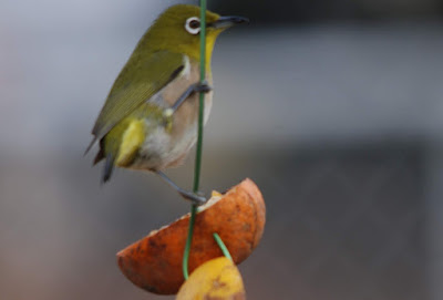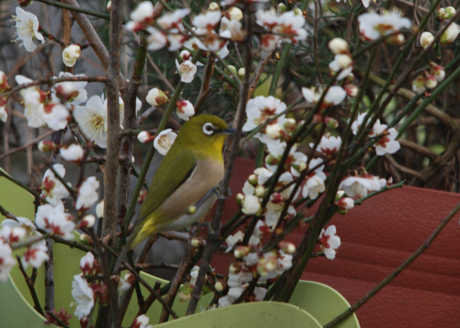 メジロ君以外にはヒヨドリやジョウビタキも菜園に遊びに来ていたが、ヒヨドリはメジロ君を追い立てるので今は少し嫌われ者。