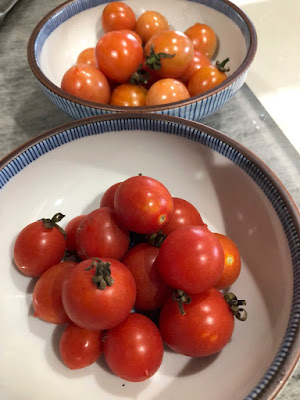 | こんな寒い日でもきれいな実をつけてくれているミニトマトは嬉しい。 最近はだいたい週に1回くらい収穫している。 |