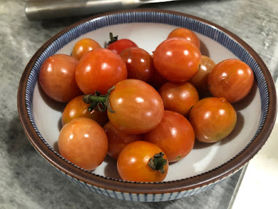 | こんな寒い日でもきれいな実をつけてくれているミニトマトは嬉しい。 最近はだいたい週に1回くらい収穫している。 |
