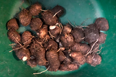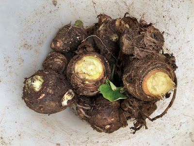 これまで収穫してきた小さめの里芋も食べ尽くしたので、今日は第1菜園に残した里芋の半分を収穫した。
