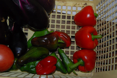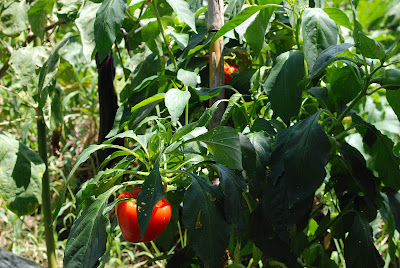 | 右は赤ピーマン、中央の赤いのは時期が過ぎて赤くなった普通のピーマン |