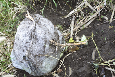 | 来年はカボチャや冬瓜は土嚢袋に植えない予定だ。 敷きつめた肥料袋のビニールの間に苗を植えた方がうまくいくような気がする。 向こうに見えるビニール袋には底を切り抜いて3本ほど長芋の種芋を植えている。 今年この地で収穫した長芋から残した種芋だ。 |