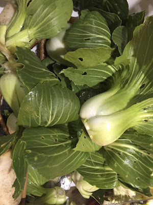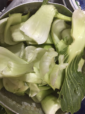 | チンゲンサイも、この程度なら食べれるのだが。 それでも一度軽く湯がいて柔らかくした後調理してもらっている。 |