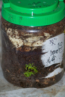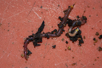 | この観察小屋には今は2cmくらいの子供ミミズが多い。 この小屋に入れた時は透明感のある赤ちゃんミミズだった。 1ヶ月余りでしっかり成長している。 |