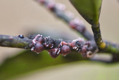 | こちらは、3年前八朔の木に付いていたカイガラムシ。 |