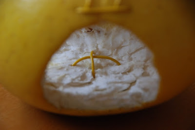 屋根の部分は。切り取った時、安全に中の実を取り出すことのできる大きさにマーキングしていたのだが、何と屋根になる八朔の方が小さいのだ。
