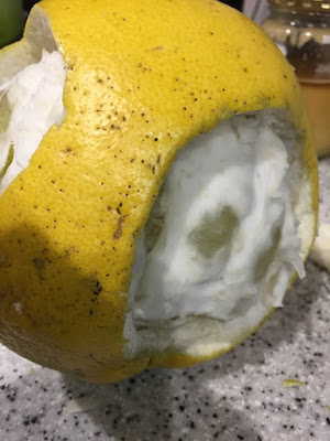 結局実を取り出す寸前に、晩白柚の皮の一部を裂いてしまった。