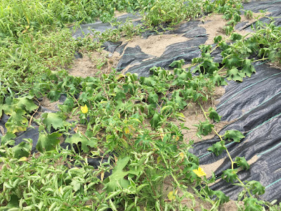 だから、トウガラシの苗なども、冬瓜の蔓が絡み、不思議な光景だ。