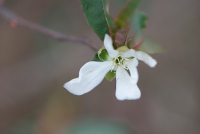 | こちらは、利休梅。 通常2月の終わり頃から咲き始める花だが、季節外れの1輪だ。 |