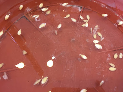 ただこれまで、冬瓜の種をこんな状態で収穫したことがなかったので、より良い種を選り出すために、数十個の種を水につけてみた。