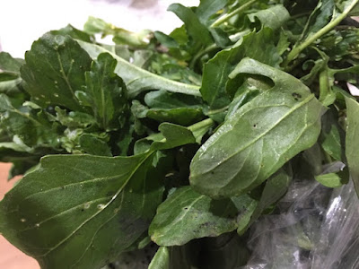 ルッコラも葉の付け根や茎は硬くなっているが、やわらかい葉の部分は食べられる。