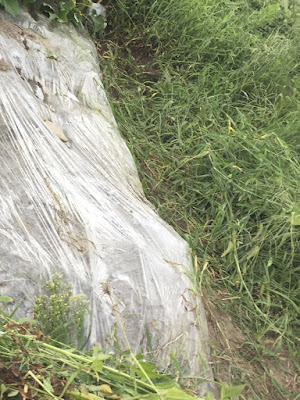 | 今日は、こんな感じの太陽熱マルチの周囲をちょっと草抜き。 |