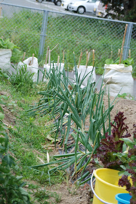 4月下旬、ショウガの畝を作ったとき、たまねぎの畝に少しかかってきたので、端の方だけ収穫して食べた。
