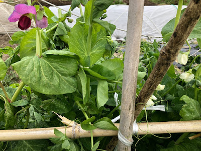 エンドウ豆の花はかなり前から咲いていたが、最初に咲いていたスナップエンドウは今まで通りすべて白い花だった。