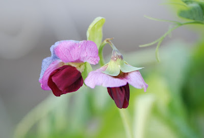 | こちらは私の畑での初めて見つけた赤いエンドウ豆の花。 |