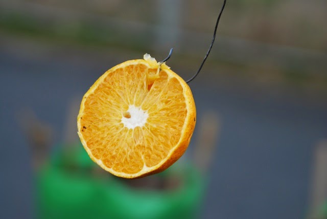 ミカンを吊るしている部分がかなり低いので、ヒヨドリのホバリングは難しいのでは?