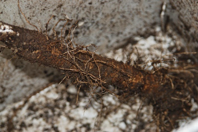 それはこのダストボックスの底に根がぶち当たって、これまでも見られたような先端直角ゴボウがそのまま伸びていってL字になったのだ。土嵩が減っていることも曲がった先の部分が長くなった一因だろう。