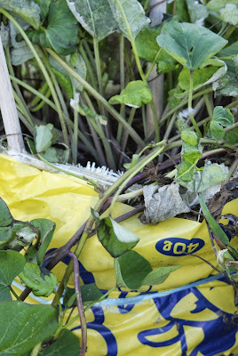 今残っている容器。特に残ったガラ袋のゴボウは茎葉の状態から判断してかなりの収穫が期待出来る。