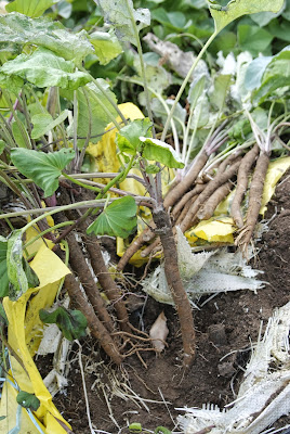 という事で今日は上の写真の3つあるガラ袋の中から一番下の写真のゴボウを収穫した。