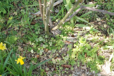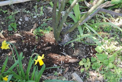 | こんな感じで、株元の雑草を抜いて、肥料を与えた。 これで、いっぱいの花を咲かせてくれると嬉しいのだが。。 |