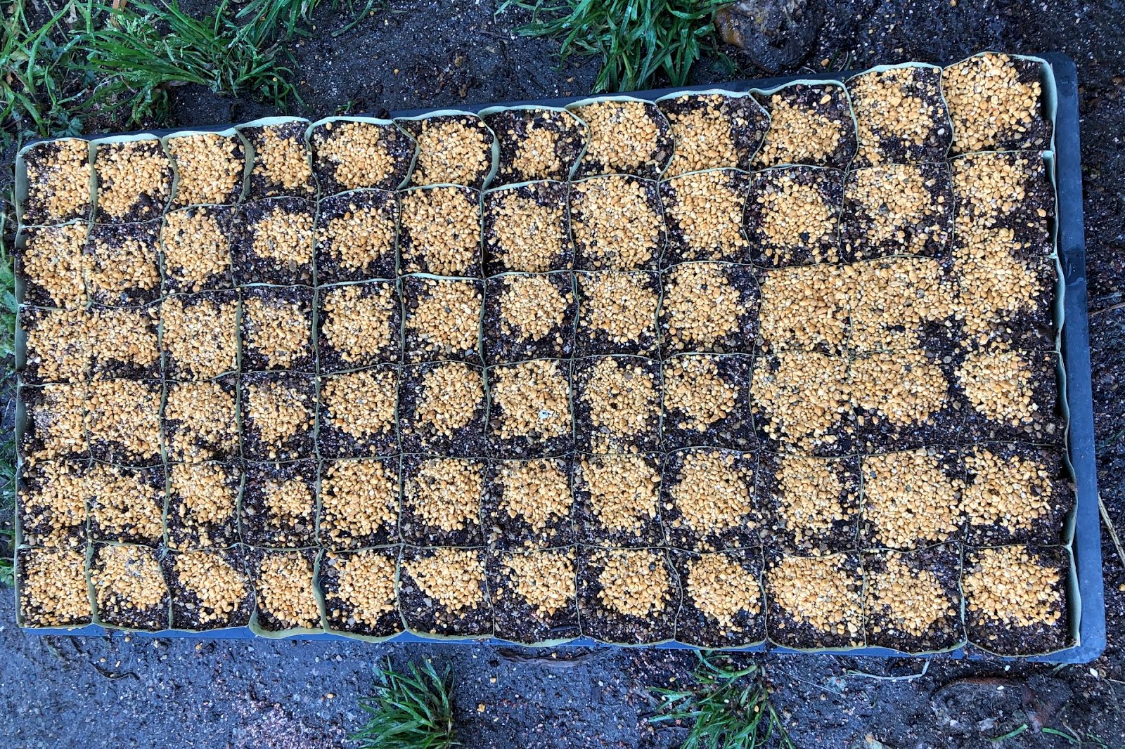 覆土は最近のほとんどのポットでの種まきに使っている鹿沼土だ。