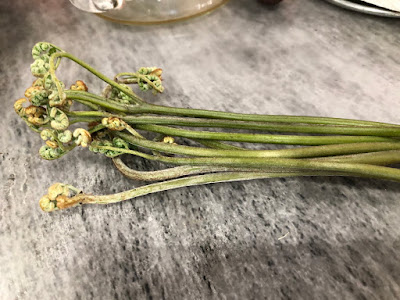 この時期は、我が家の果樹園では山菜がいっぱい採れる時期なのだが、なぜか今年ワラビが激減し、数えるほどしか採れない。