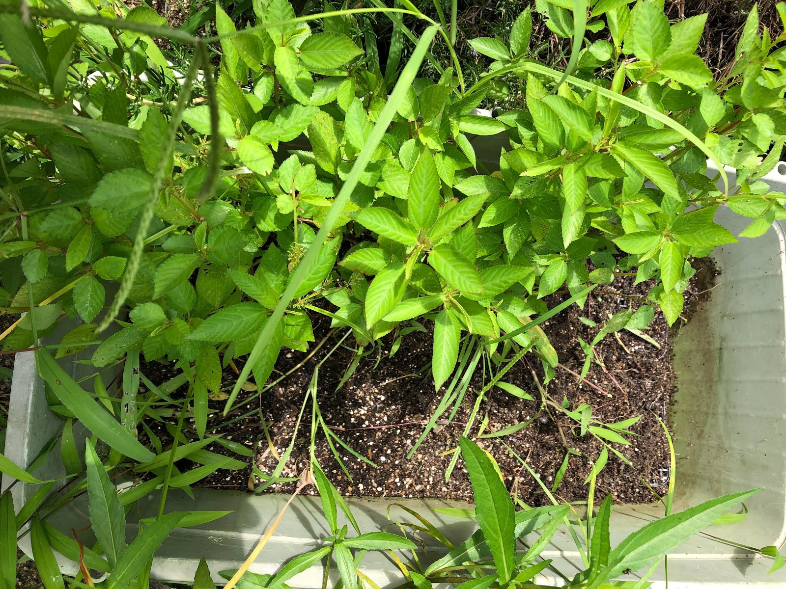モロヘイヤのこれまで植えた苗は元はと言えば、同じプランターに種をバラ蒔きしてそこに芽を出した苗。