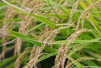 畑の前の水田では、稲穂が気持ちよく垂れている。