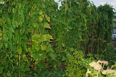 今のカボチャと冬瓜の収穫が終わったら、蔓を整理して、この付近には来年カボチャを植える時期まで何も植えずに土を養生させよう。