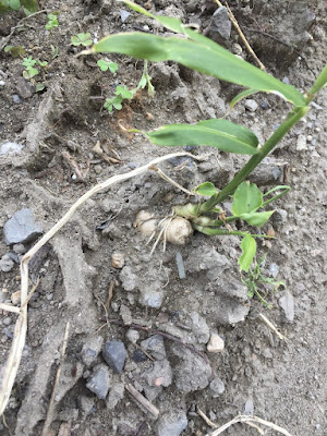 雨に強いはずのショウガは、畝の土が流れて種ショウガが露出していた。