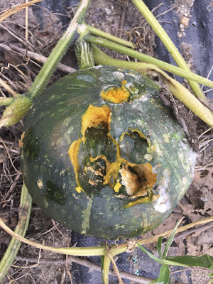 | 怪しいと思って、指で押さえつけると穴が空いた。 今後はこんな風になる前に収穫してしまおう。 |